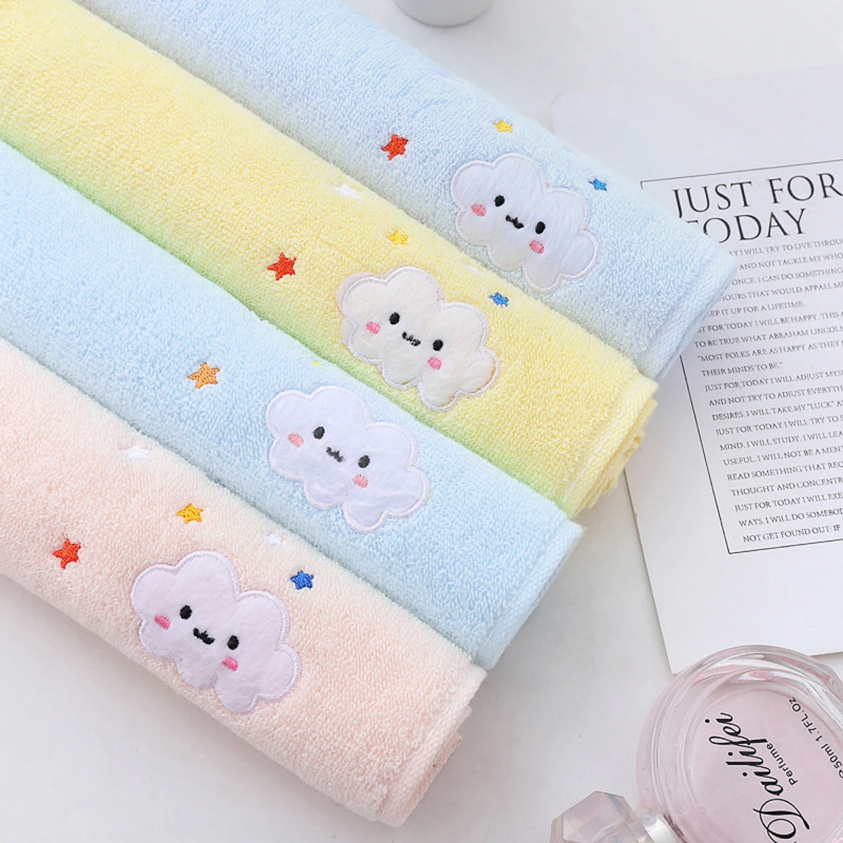 Made with 100% cotton. Extra smooth for increase comfort. Features adorable little cloud embroidery.