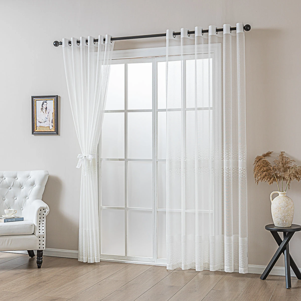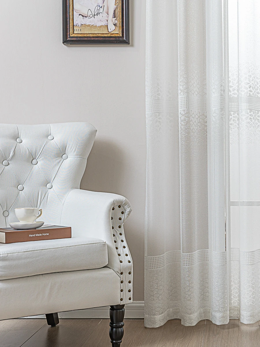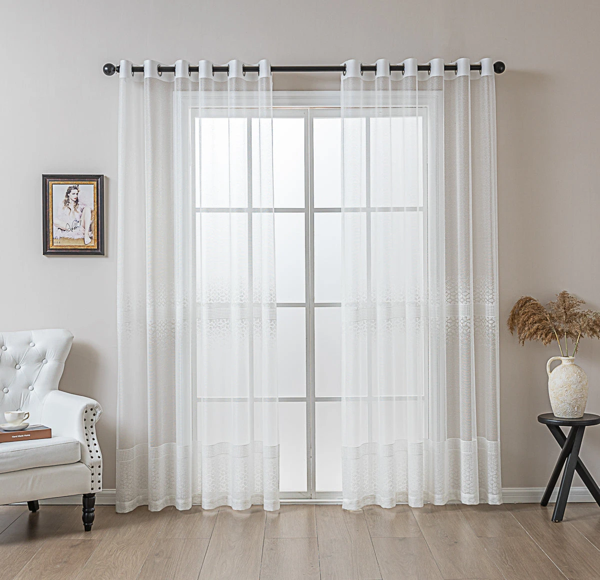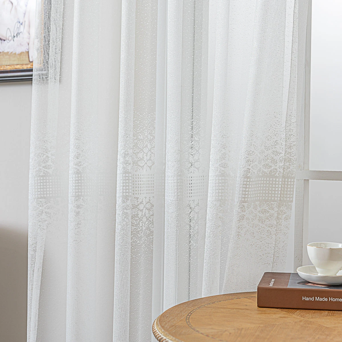 This semi-sheer jacquard curtain is made from polyester. Perfect for cottagecore aesthetic or elegant modern room. Easy installation with 12 grommet holes on the top.