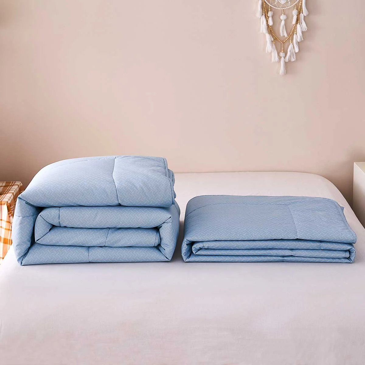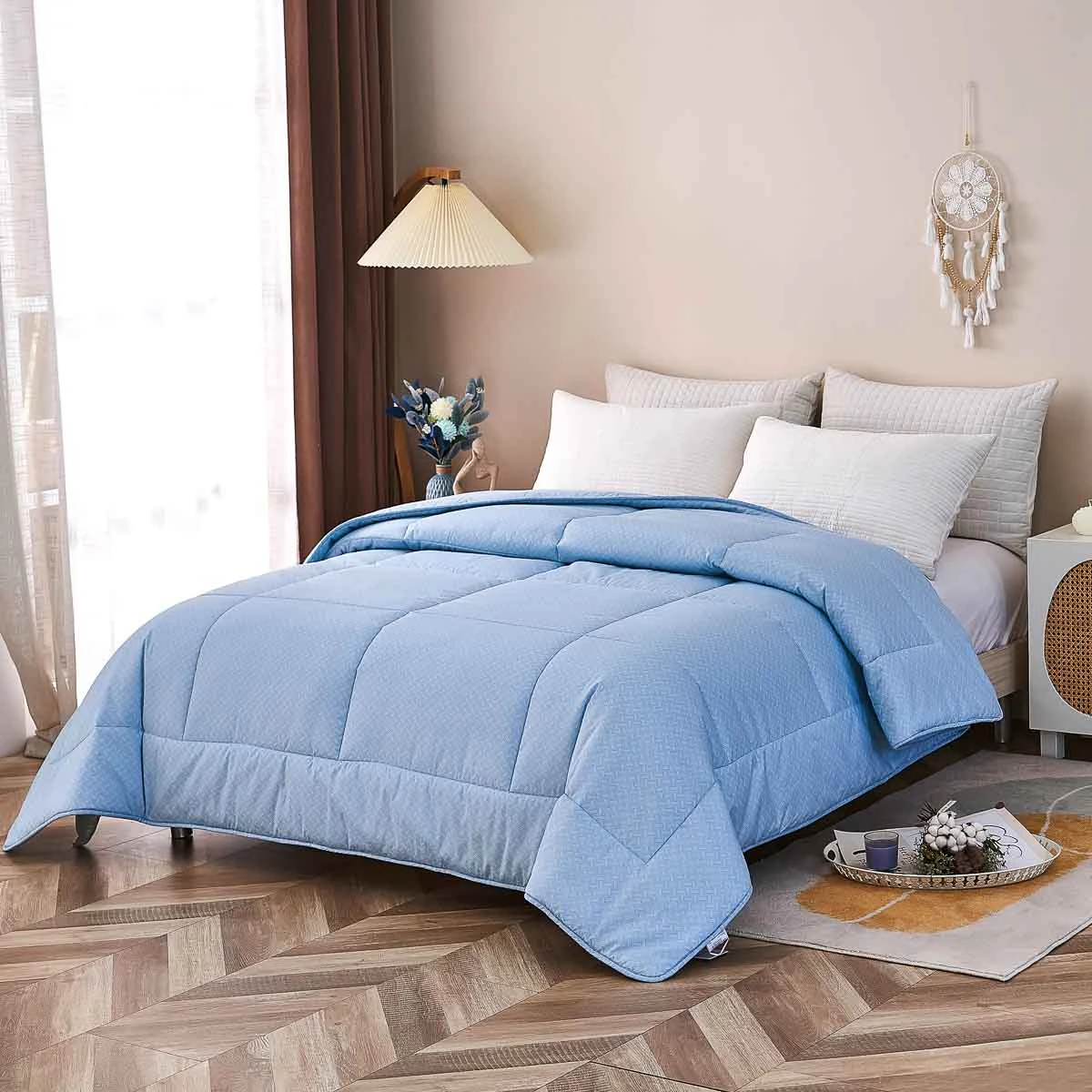 One for All Season:Thin microfiber fillings are made into a batt before attaching to the outer fabric, making the comforter drape around your body and less likely to move during the night.